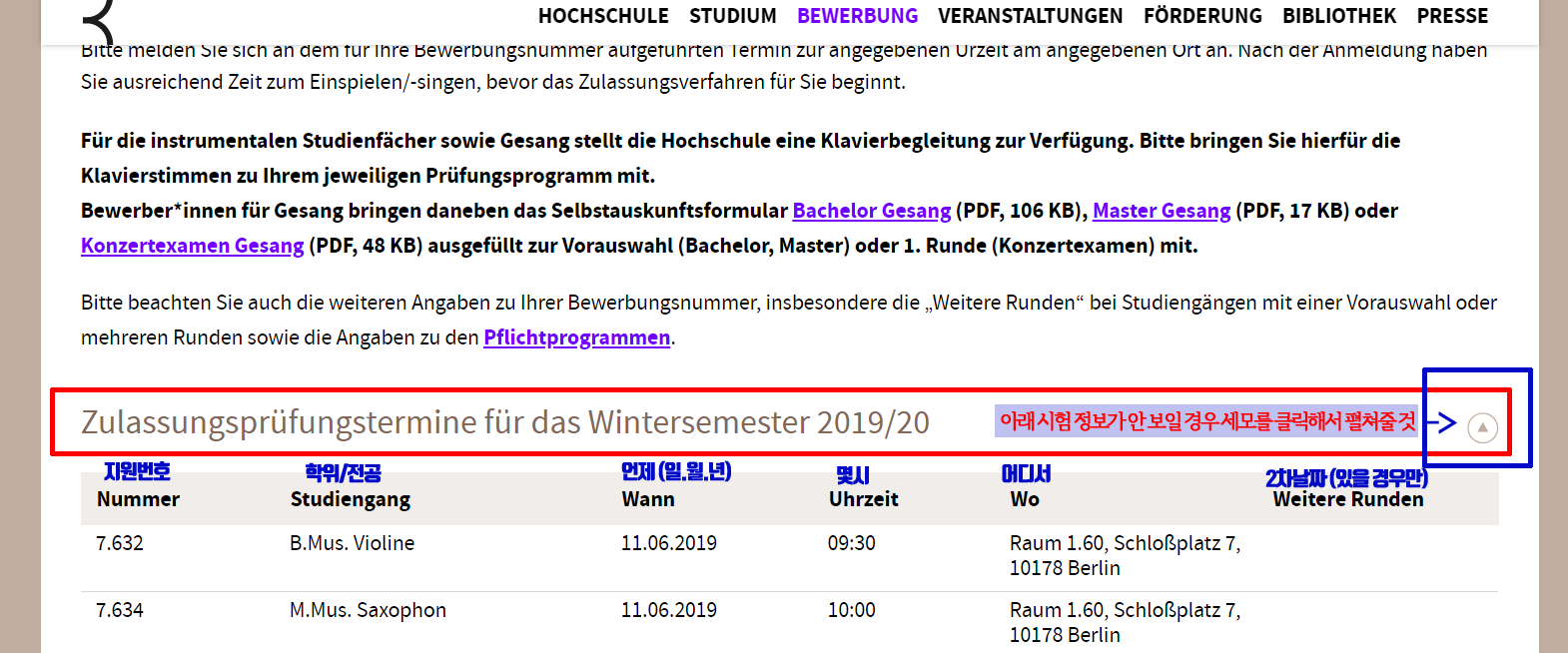 그럼, https://www.hfm-berlin.de/bewerbung/zulassungsverfahren/ 여기를 클릭해봅니다.